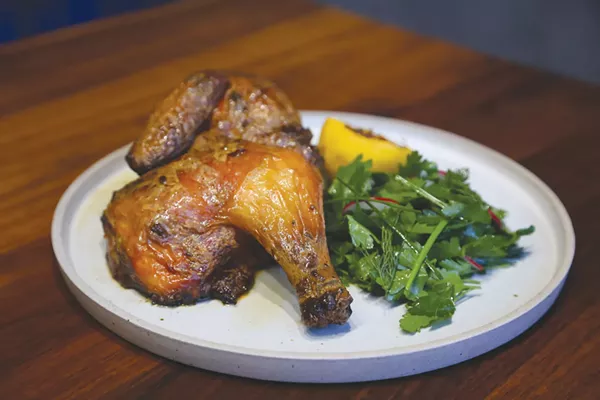 The chicken ($28) at Alea is such a dish. Like most things at this fearless new Ohio City restaurant, the entree is stripped down to bare essentials. Yogurt-marinated, roasted and grilled, the bone-in half bird sports a mahogany skin that gets ripped, stripped and devoured with Walking Dead-like intensity. Both the white and dark meat below are moist, lush and so deeply flavorful that any accompanying sauce would be an affront to the chicken.