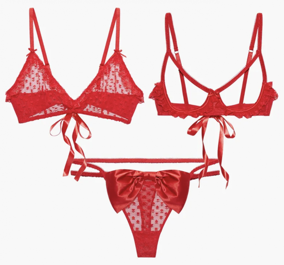 The hottie’s lingerie was made of sheer fabric with hot pink straps and red petal-like accents throughout. She wore her blond hair down in a casual side part with strands of her locks brushed in front of her left shoulder. Her curvy figure was hard to miss and the sheer nature of her bra meant that her nipples could be seen.