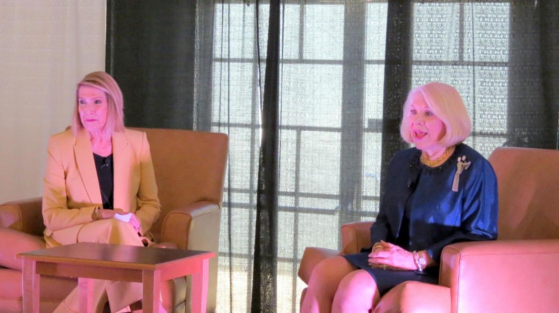 Civia Tamarkin, NCJW AZ's president, talks with Jill Wine-Banks at the organization's March 1 luncheon.