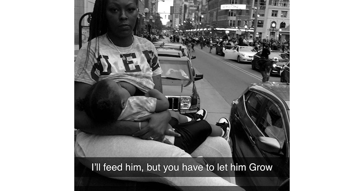 We had been out there for maybe an hour and my baby was hungry. I tried to supplement the boob before it was time to feed him, but he was not having it. And so, because my 13-year-old was outside of the vehicle, I wanted to sit on the hood, so then I could kind of keep an eye on the whole scene and Justice kept pulling my boob out. So I just gave it to him and it just so happened my wife had taken the photos.