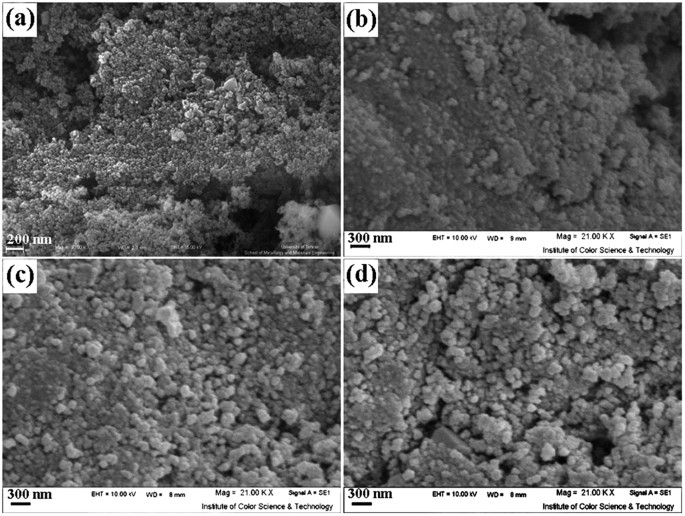ZnCr 2 O 4 is a spinel with cubic phase, space group of Fd/3m and space group number 227. In this work, the all of the peaks in XRD patterns of samples can be indexed to cubic phase zinc chromium oxide but JCPDSs in these patterns are not the same. The various JCPDSs in the same phases of a compound are due to grain orientations of structures, for example: the principle ZnCr 2 O 4 grain orientations are: (311), (200), (422), (440) for JCPDS = = 22–1107; (311), (220) for JCPDS = 73–1962; and (220), (311), (511), (440) for JCPDS = 01–1123. Furthermore, the crystallographic parameters in various JCPDSs aren't same, so in these patterns can be seen the different crystallographic parameters such as: a = 8.3257 in JCPDS = 22–1107; a = 8.28 in JCPDS = 73–1962; and a = 8.3200 in JCPDS = 01–1123 (cubic phase has a = b = c and α = β = γ = 90°). By considering above explanations, the various JCPDSs in same phases of a compound can be used to determine grain orientations of structures.
