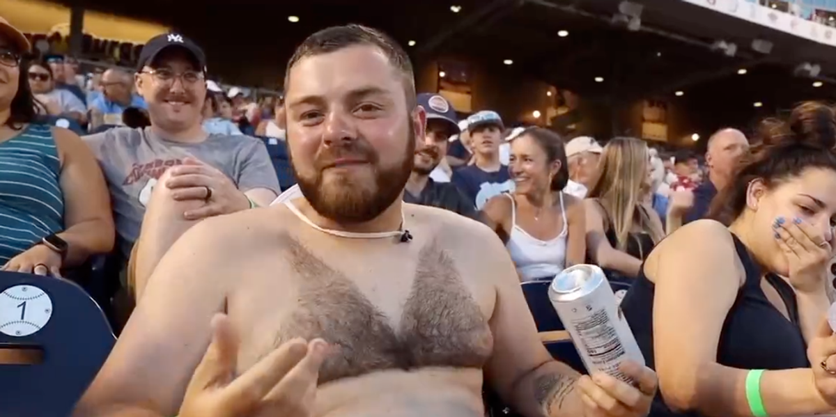 A baseball fan became an instant meme when clips of his freshly trimmed chest hair became a viral hit online.