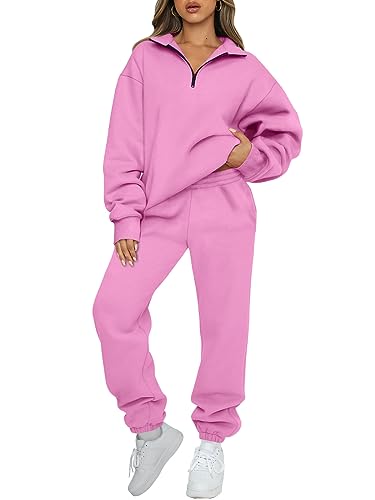 AUTOMET Women's Sweatsuits 2 Piece Outfits Long Sleeve Half Zip Pullover and Baggy Sweatpants with Pockets.