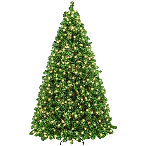 Yaheetech 7.5ft Pre-lit Artificial Christmas Tree with Incandescent Warm White Lights, Snow Flocked Prelighted Xmas Tree wi….