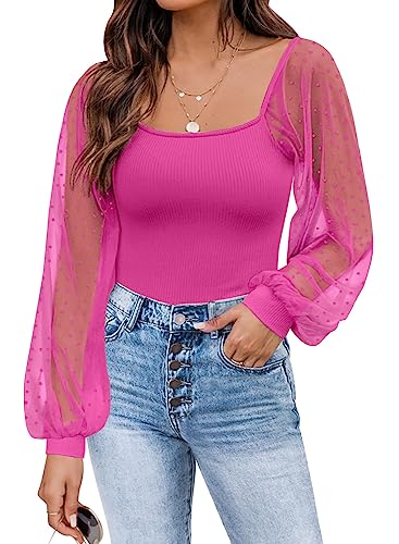 DOROSE Womens Mesh Long Sleeve Shirts Casual Blouses Tops.